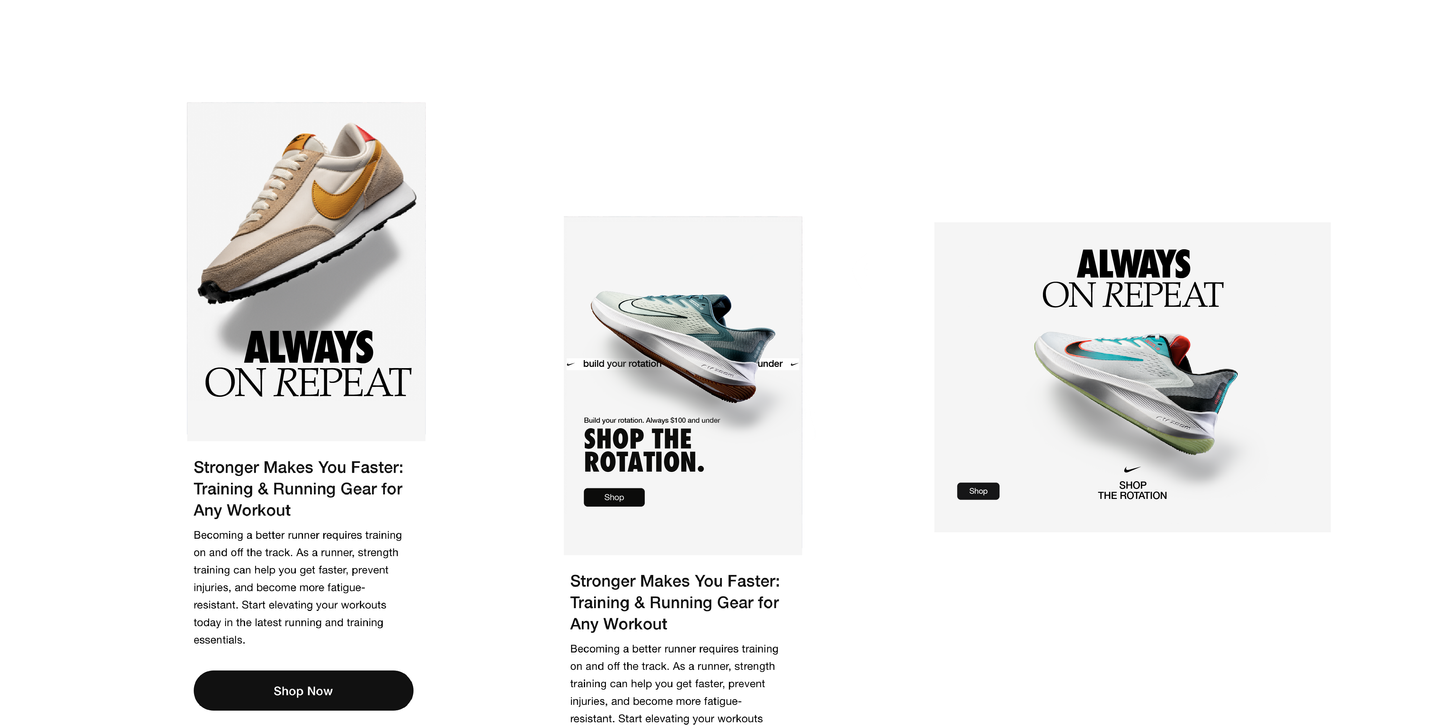 As part of the creative direction team, I contributed to bringing to life a graphic system for the new product platform "Nike Under a 100." This included developing toolkits, creating still and motion graphics, and producing go-to-market assets.